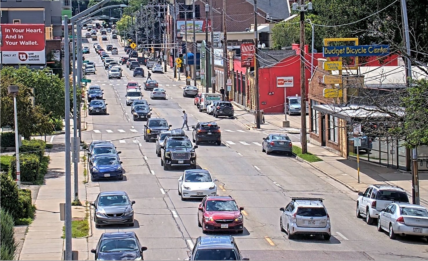 This is not a fun street to walk on. The sidewalks are narrow, no one remembers when peak-hour lanes are in effect (causing short merges for vehicles before they hit a parked car), and students are crossing constantly to get to and from the Vilas neighborhood for cheaper, off-campus housing. There are infrastructure concerns that made reconstruction a top priority and the City is taking advantage to redesign it.